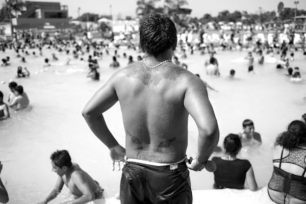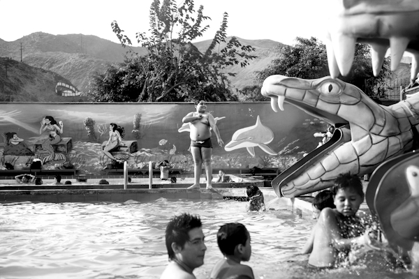 - A man prepares to get into the pool. Sinchi Roca Park. Puente Piedra, Lima – Peru.