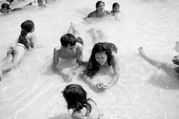 - A couple kisses in the pool. Sinchi Roca Park. Puente Piedra, Lima – Peru.