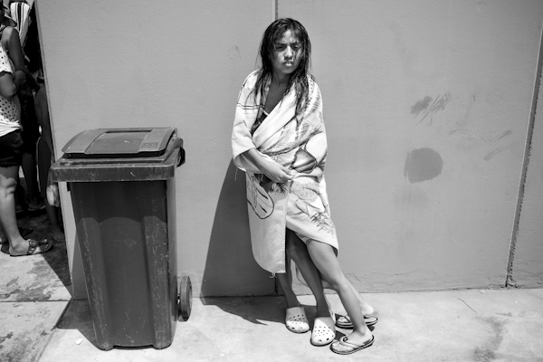 - A woman takes a shower after being swimming in the pool. Huachipa, Lima – Peru.