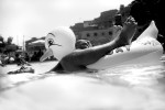 - A girl floats through the water waves. Huachipa, Lima – Peru.