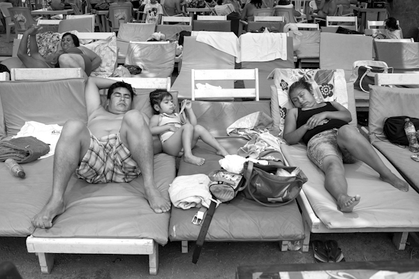 - A family rest after swimming in the pool. El Anden club. Puente Piedra, Lima – Peru.