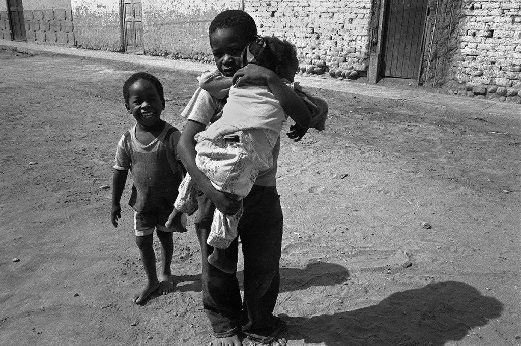 Vemos al patriarca Amador Ballumbrosio (1933-2009), albañil de oficio, notable violinista y danzante (hoy convertido en leyenda de la música afro-peruana), rodeado de su esposa Adelina, hijos y nietos en la intimidad familiar.